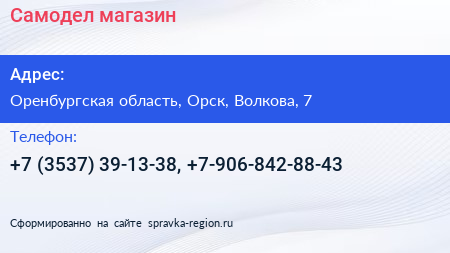 Самодел, магазин по адресу Оренбургская область, Орск, Волкова, 7 в дальнейшем Организация, размещена в следующих категориях: