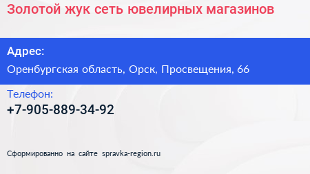 Золотой жук, сеть ювелирных магазинов по адресу Оренбургская область, Орск, Просвещения, 66 в дальнейшем Организация, размещена в следующих категориях: