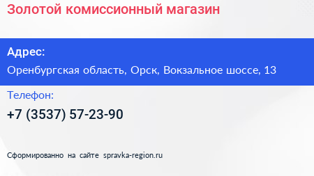 Золотой, комиссионный магазин по адресу Оренбургская область, Орск, Вокзальное шоссе, 13 в дальнейшем Организация, размещена в следующих категориях: