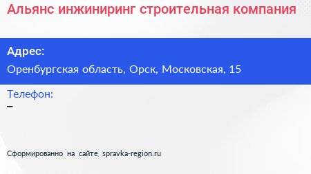 Альянс инжиниринг, строительная компания по адресу Оренбургская область, Орск, Московская, 15 в дальнейшем Организация, размещена в следующих категориях: