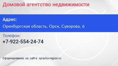 Домовой, агентство недвижимости по адресу Оренбургская область, Орск, Суворова, 6 в дальнейшем Организация, размещена в следующих категориях: