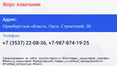 Форс, компания по адресу Оренбургская область, Орск, Строителей, 30 в дальнейшем Организация, размещена в следующих категориях: