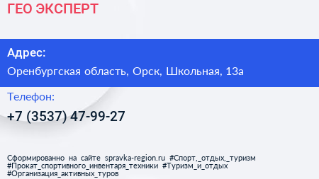 ГЕО ЭКСПЕРТ по адресу Оренбургская область, Орск, Школьная, 13а в дальнейшем Организация, размещена в следующих категориях: