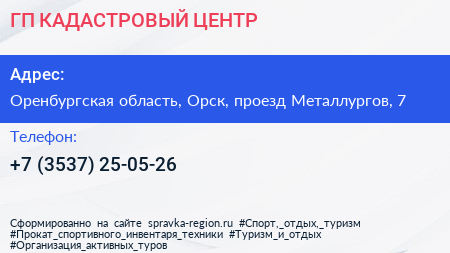 ГП КАДАСТРОВЫЙ ЦЕНТР по адресу Оренбургская область, Орск, проезд Металлургов, 7 в дальнейшем Организация, размещена в следующих категориях: