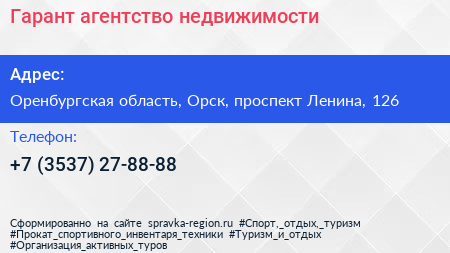 Гарант, агентство недвижимости по адресу Оренбургская область, Орск, проспект Ленина, 126 в дальнейшем Организация, размещена в следующих категориях: