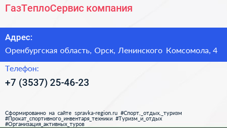 ГазТеплоСервис, компания по адресу Оренбургская область, Орск, Ленинского Комсомола, 4 в дальнейшем Организация, размещена в следующих категориях: