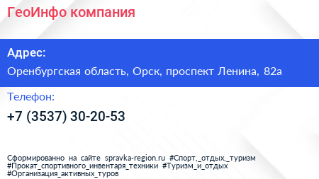 ГеоИнфо, компания по адресу Оренбургская область, Орск, проспект Ленина, 82а в дальнейшем Организация, размещена в следующих категориях: