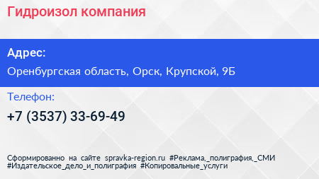 Гидроизол, компания по адресу Оренбургская область, Орск, Крупской, 9Б в дальнейшем Организация, размещена в следующих категориях: