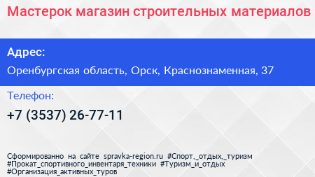 Мастерок, магазин строительных материалов по адресу Оренбургская область, Орск, Краснознаменная, 37 в дальнейшем Организация, размещена в следующих категориях: