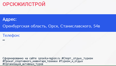 ОРСКЖИЛСТРОЙ по адресу Оренбургская область, Орск, Станиславского, 54в в дальнейшем Организация, размещена в следующих категориях: