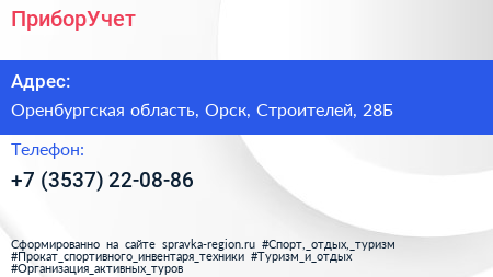 ПриборУчет по адресу Оренбургская область, Орск, Строителей, 28Б в дальнейшем Организация, размещена в следующих категориях: