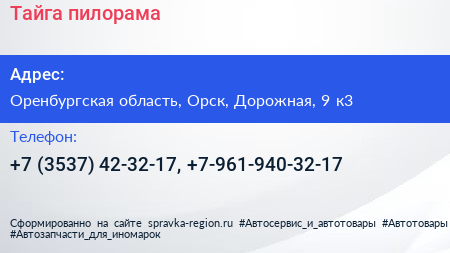 Тайга, пилорама по адресу Оренбургская область, Орск, Дорожная, 9 к3 в дальнейшем Организация, размещена в следующих категориях: