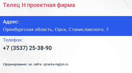 Телец-Н, проектная фирма по адресу Оренбургская область, Орск, Станиславского, 7 в дальнейшем Организация, размещена в следующих категориях: