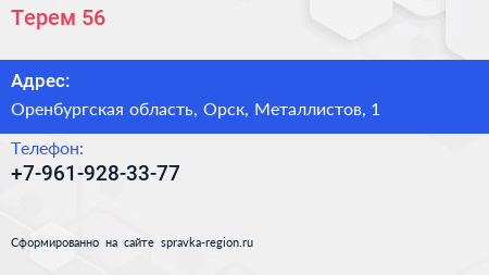 Терем 56 по адресу Оренбургская область, Орск, Металлистов, 1 в дальнейшем Организация, размещена в следующих категориях: