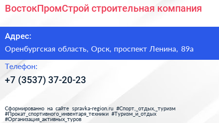 ВостокПромСтрой, строительная компания по адресу Оренбургская область, Орск, проспект Ленина, 89а в дальнейшем Организация, размещена в следующих категориях: