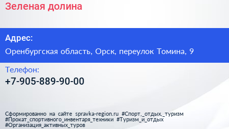 Зеленая долина по адресу Оренбургская область, Орск, переулок Томина, 9 в дальнейшем Организация, размещена в следующих категориях: