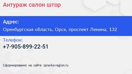 Антураж, салон штор по адресу Оренбургская область, Орск, проспект Ленина, 132 в дальнейшем Организация, размещена в следующих категориях: