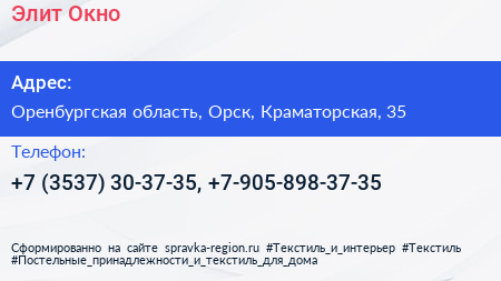 Элит Окно по адресу Оренбургская область, Орск, Краматорская, 35 в дальнейшем Организация, размещена в следующих категориях: