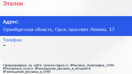 Эталон по адресу Оренбургская область, Орск, проспект Ленина, 17 в дальнейшем Организация, размещена в следующих категориях: