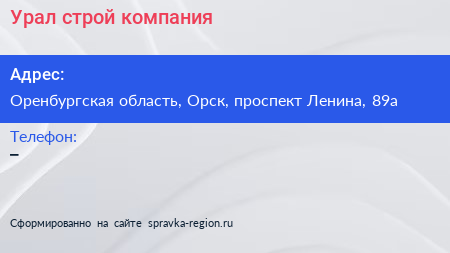 Урал строй, компания по адресу Оренбургская область, Орск, проспект Ленина, 89а в дальнейшем Организация, размещена в следующих категориях: