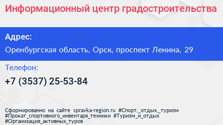 Информационный центр градостроительства по адресу Оренбургская область, Орск, проспект Ленина, 29 в дальнейшем Организация, размещена в следующих категориях: