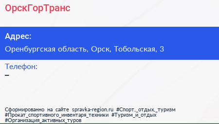 ОрскГорТранс по адресу Оренбургская область, Орск, Тобольская, 3 в дальнейшем Организация, размещена в следующих категориях: