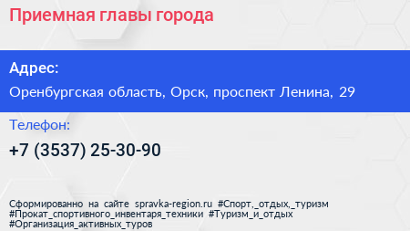 Приемная главы города по адресу Оренбургская область, Орск, проспект Ленина, 29 в дальнейшем Организация, размещена в следующих категориях:
