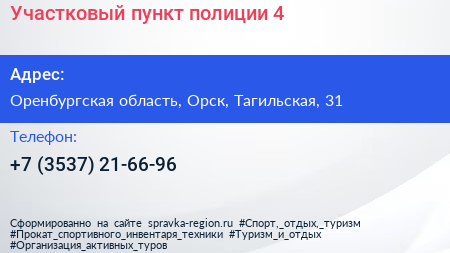 Участковый пункт полиции №4 по адресу Оренбургская область, Орск, Тагильская, 31 в дальнейшем Организация, размещена в следующих категориях: