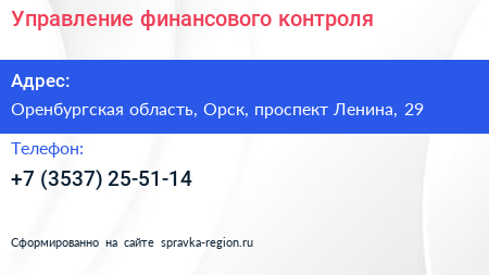 Управление финансового контроля по адресу Оренбургская область, Орск, проспект Ленина, 29 в дальнейшем Организация, размещена в следующих категориях: