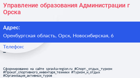 Управление образования Администрации г. Орска по адресу Оренбургская область, Орск, Новосибирская, 6 в дальнейшем Организация, размещена в следующих категориях: