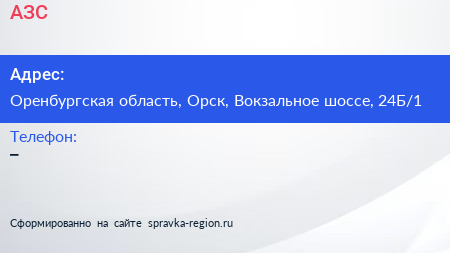 АЗС по адресу Оренбургская область, Орск, Вокзальное шоссе, 24Б/1 в дальнейшем Организация, размещена в следующих категориях: