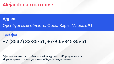 Alejandro, автоателье по адресу Оренбургская область, Орск, Карла Маркса, 91 в дальнейшем Организация, размещена в следующих категориях: