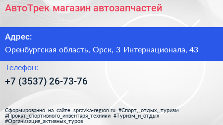 АвтоТрек, магазин автозапчастей по адресу Оренбургская область, Орск, 3 Интернационала, 43 в дальнейшем Организация, размещена в следующих категориях: