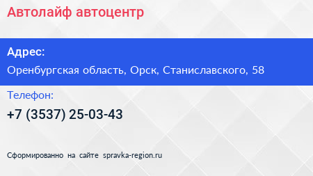 Автолайф, автоцентр по адресу Оренбургская область, Орск, Станиславского, 58 в дальнейшем Организация, размещена в следующих категориях: