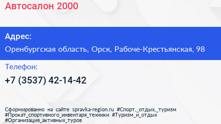 Автосалон 2000 по адресу Оренбургская область, Орск, Рабоче-Крестьянская, 98 в дальнейшем Организация, размещена в следующих категориях: