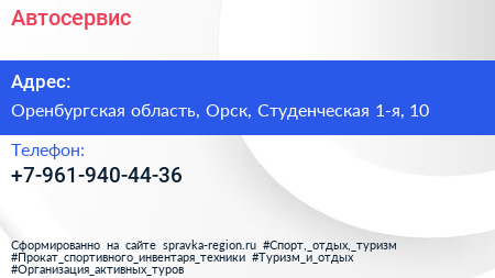 Автосервис по адресу Оренбургская область, Орск, Студенческая 1-я, 10 в дальнейшем Организация, размещена в следующих категориях: