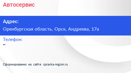 Автосервис по адресу Оренбургская область, Орск, Андреева, 17а в дальнейшем Организация, размещена в следующих категориях: