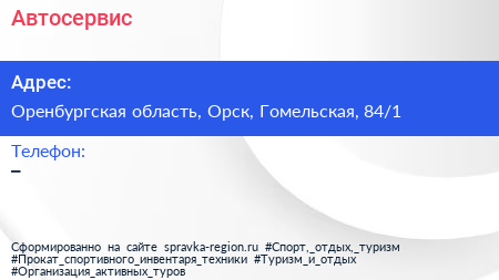 Автосервис по адресу Оренбургская область, Орск, Гомельская, 84/1 в дальнейшем Организация, размещена в следующих категориях:
