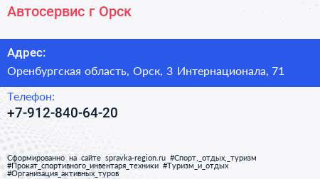 Автосервис, г. Орск по адресу Оренбургская область, Орск, 3 Интернационала, 71 в дальнейшем Организация, размещена в следующих категориях: