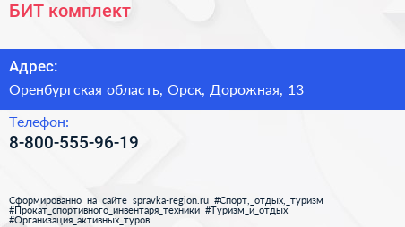 БИТ комплект по адресу Оренбургская область, Орск, Дорожная, 13 в дальнейшем Организация, размещена в следующих категориях: