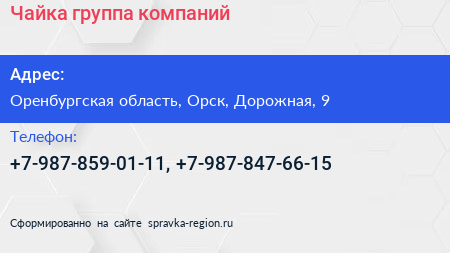 Чайка, группа компаний по адресу Оренбургская область, Орск, Дорожная, 9 в дальнейшем Организация, размещена в следующих категориях:
