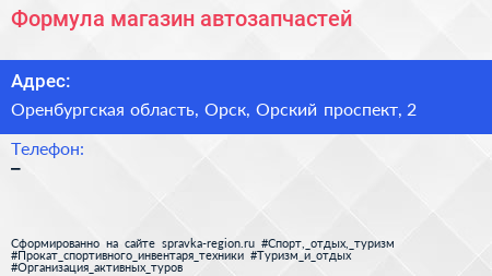 Формула, магазин автозапчастей по адресу Оренбургская область, Орск, Орский проспект, 2 в дальнейшем Организация, размещена в следующих категориях: