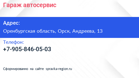 Гараж, автосервис по адресу Оренбургская область, Орск, Андреева, 13 в дальнейшем Организация, размещена в следующих категориях: