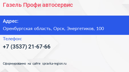 Газель-Профи, автосервис по адресу Оренбургская область, Орск, Энергетиков, 100 в дальнейшем Организация, размещена в следующих категориях: