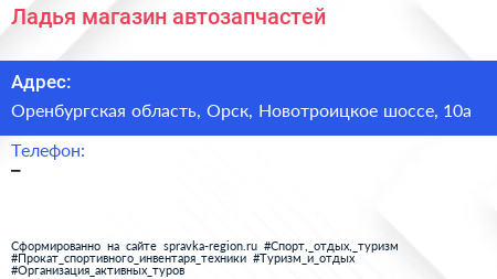 Ладья, магазин автозапчастей по адресу Оренбургская область, Орск, Новотроицкое шоссе, 10а в дальнейшем Организация, размещена в следующих категориях: