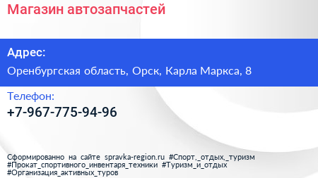 Магазин автозапчастей по адресу Оренбургская область, Орск, Карла Маркса, 8 в дальнейшем Организация, размещена в следующих категориях: