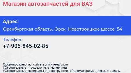 Магазин автозапчастей для ВАЗ по адресу Оренбургская область, Орск, Новотроицкое шоссе, 54 в дальнейшем Организация, размещена в следующих категориях: