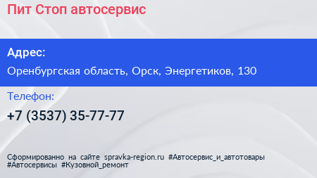 Пит-Стоп, автосервис по адресу Оренбургская область, Орск, Энергетиков, 130 в дальнейшем Организация, размещена в следующих категориях: