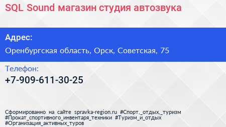 SQL Sound, магазин-студия автозвука по адресу Оренбургская область, Орск, Советская, 75 в дальнейшем Организация, размещена в следующих категориях: