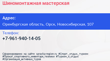 Шиномонтажная мастерская по адресу Оренбургская область, Орск, Новосибирская, 107 в дальнейшем Организация, размещена в следующих категориях: